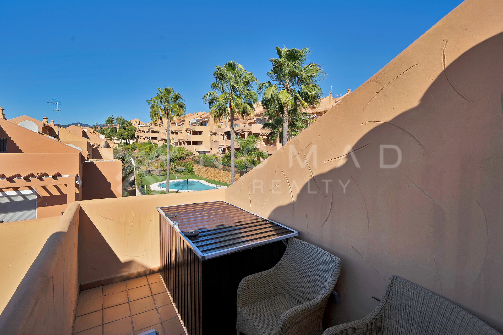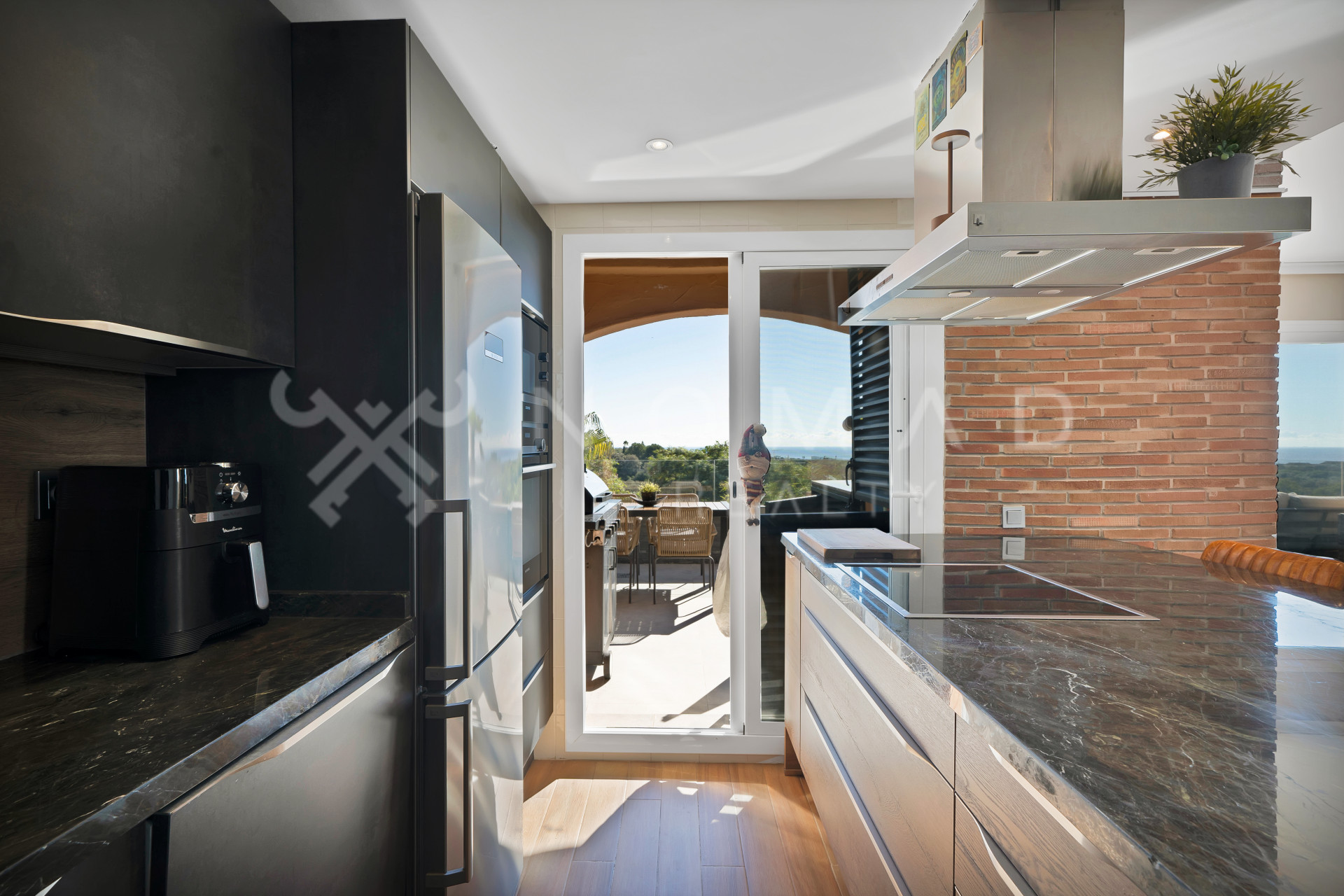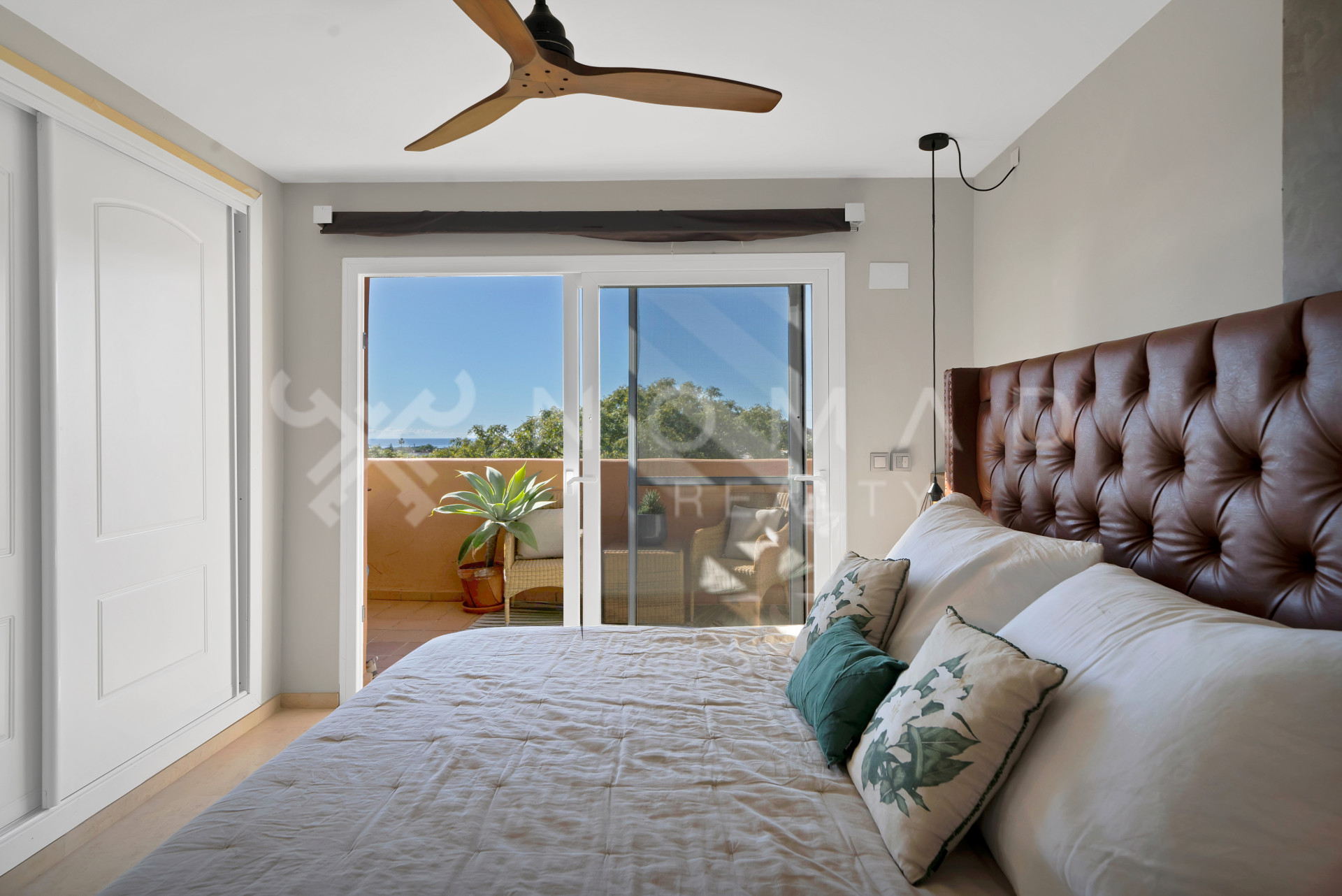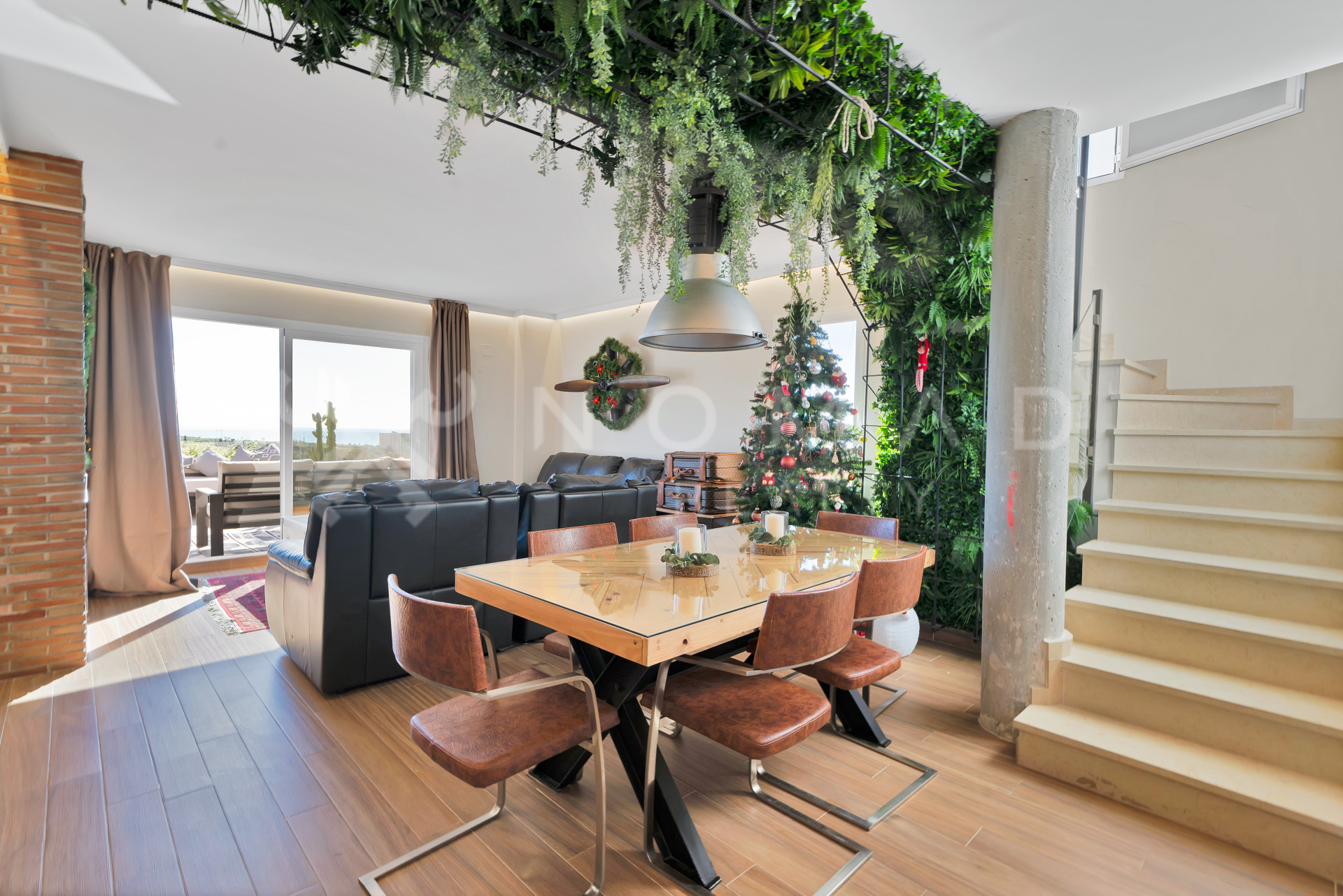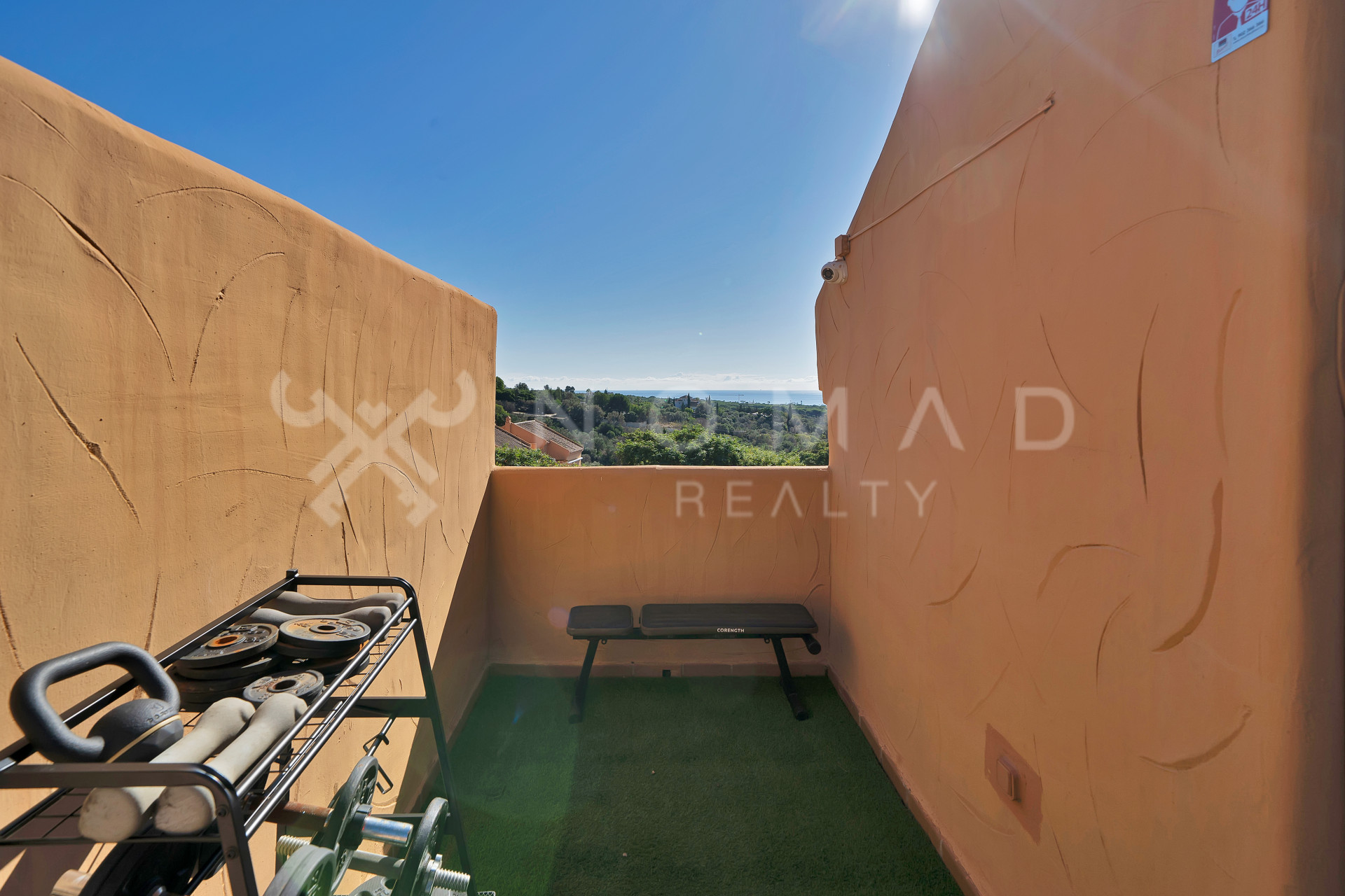 Este espectacular apartamento ático dúplex de reciente renovación y mejoras, situado en la segunda planta en esquina, con orientación sur oeste, tiene unas impresionantes vistas panorámicas al mar, la montaña, Gibraltar, el campo de golf y todo el entorno. Además estas vistas nunca podrán bloquearse, debido a su altura.