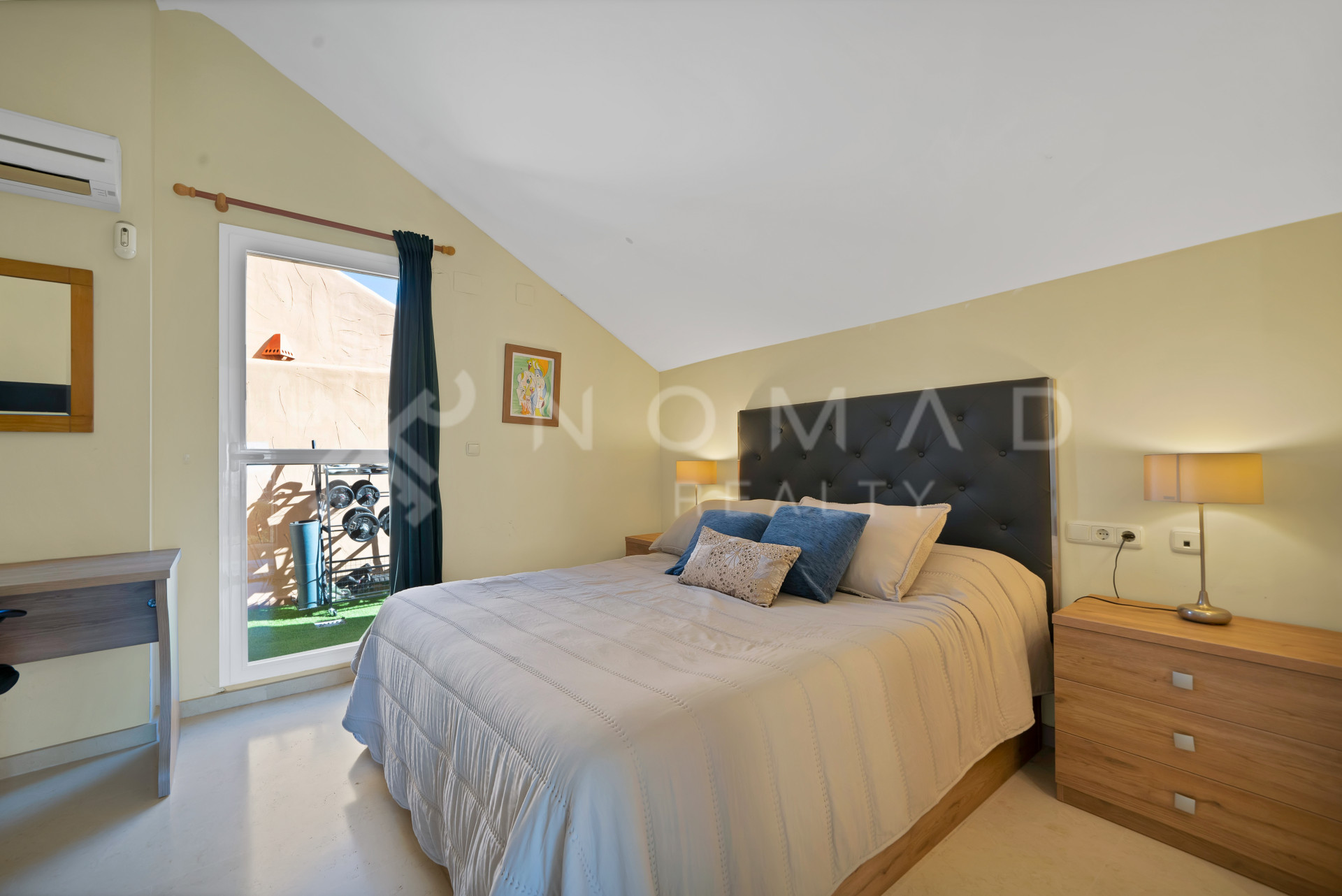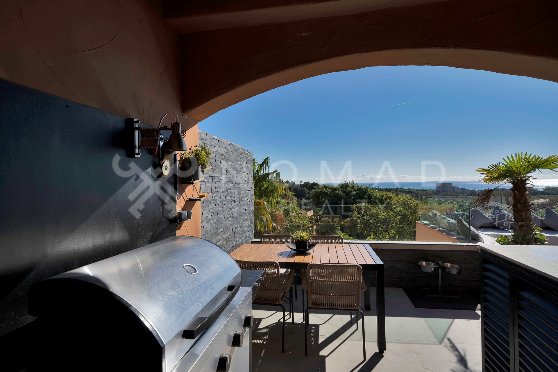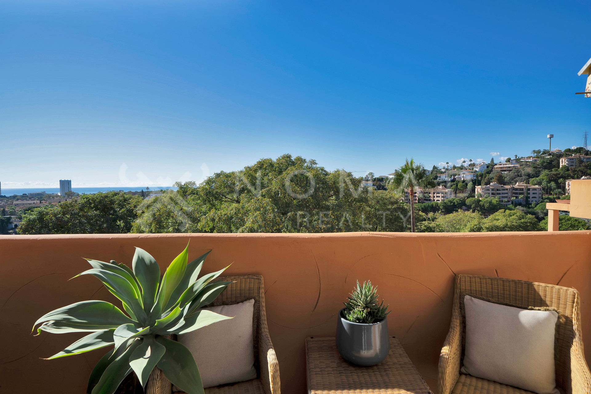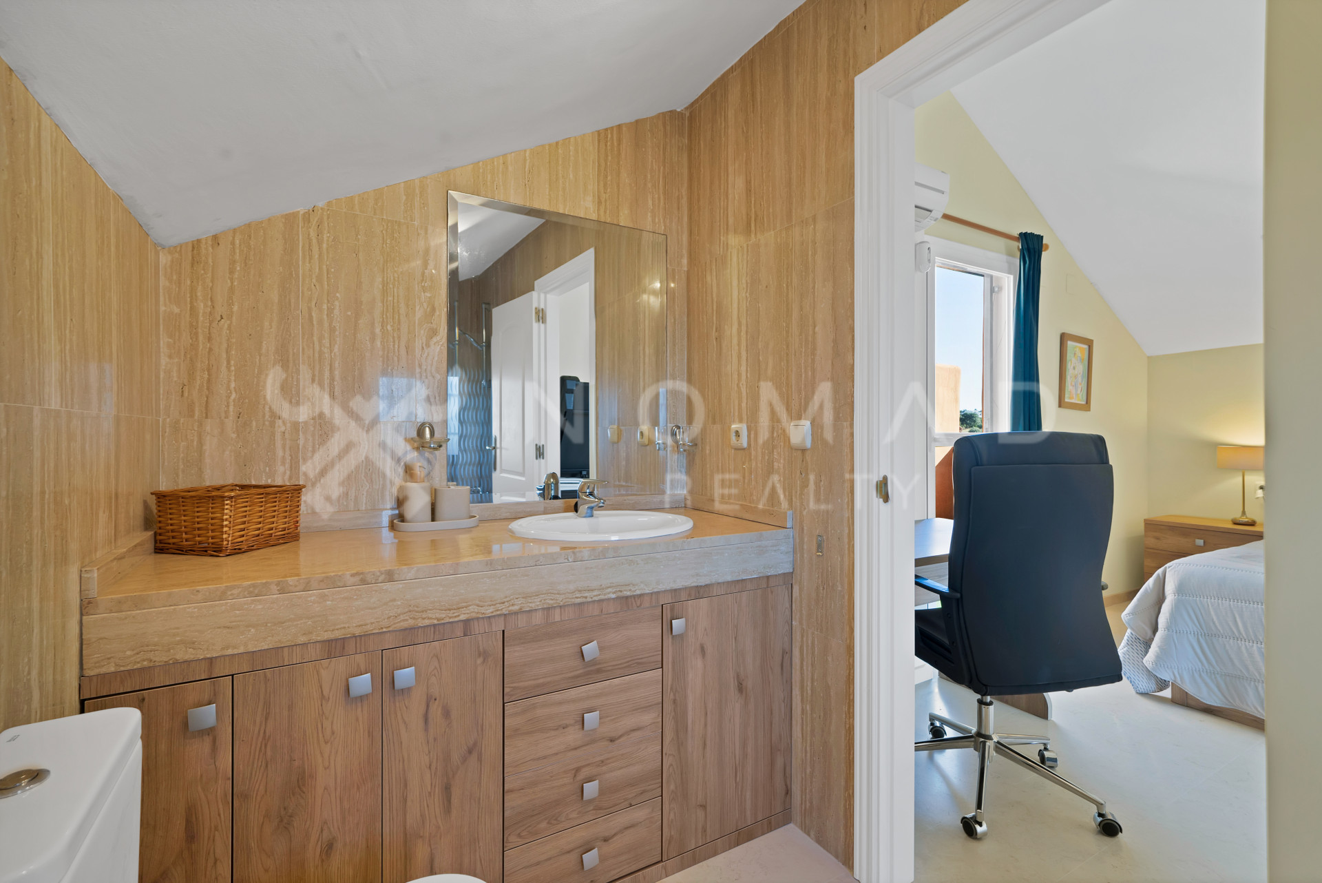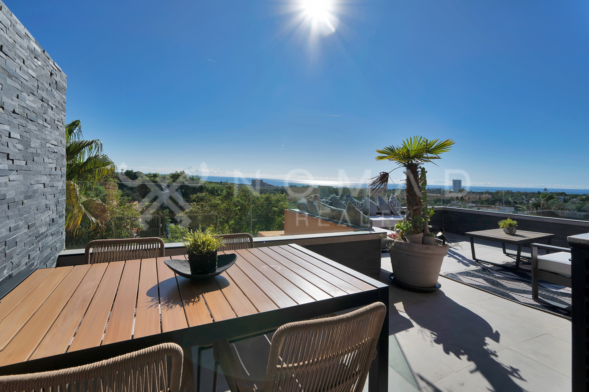 Este espectacular apartamento ático dúplex de reciente renovación y mejoras, situado en la segunda planta en esquina, con orientación sur oeste, tiene unas impresionantes vistas panorámicas al mar, la montaña, Gibraltar, el campo de golf y todo el entorno. Además estas vistas nunca podrán bloquearse, debido a su altura.