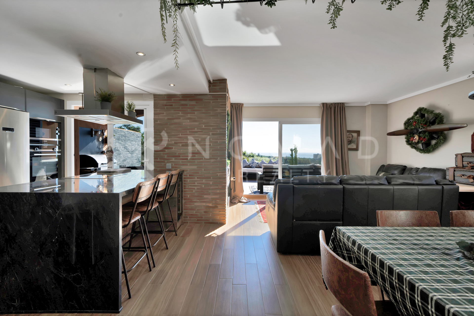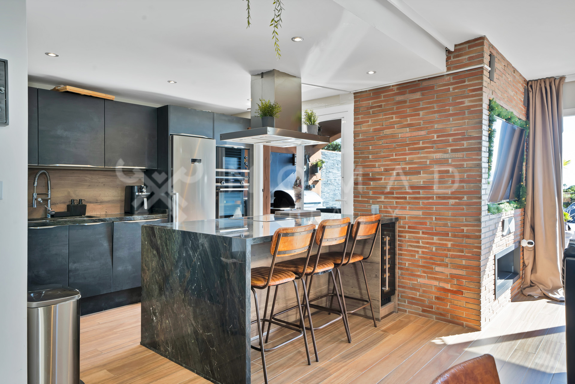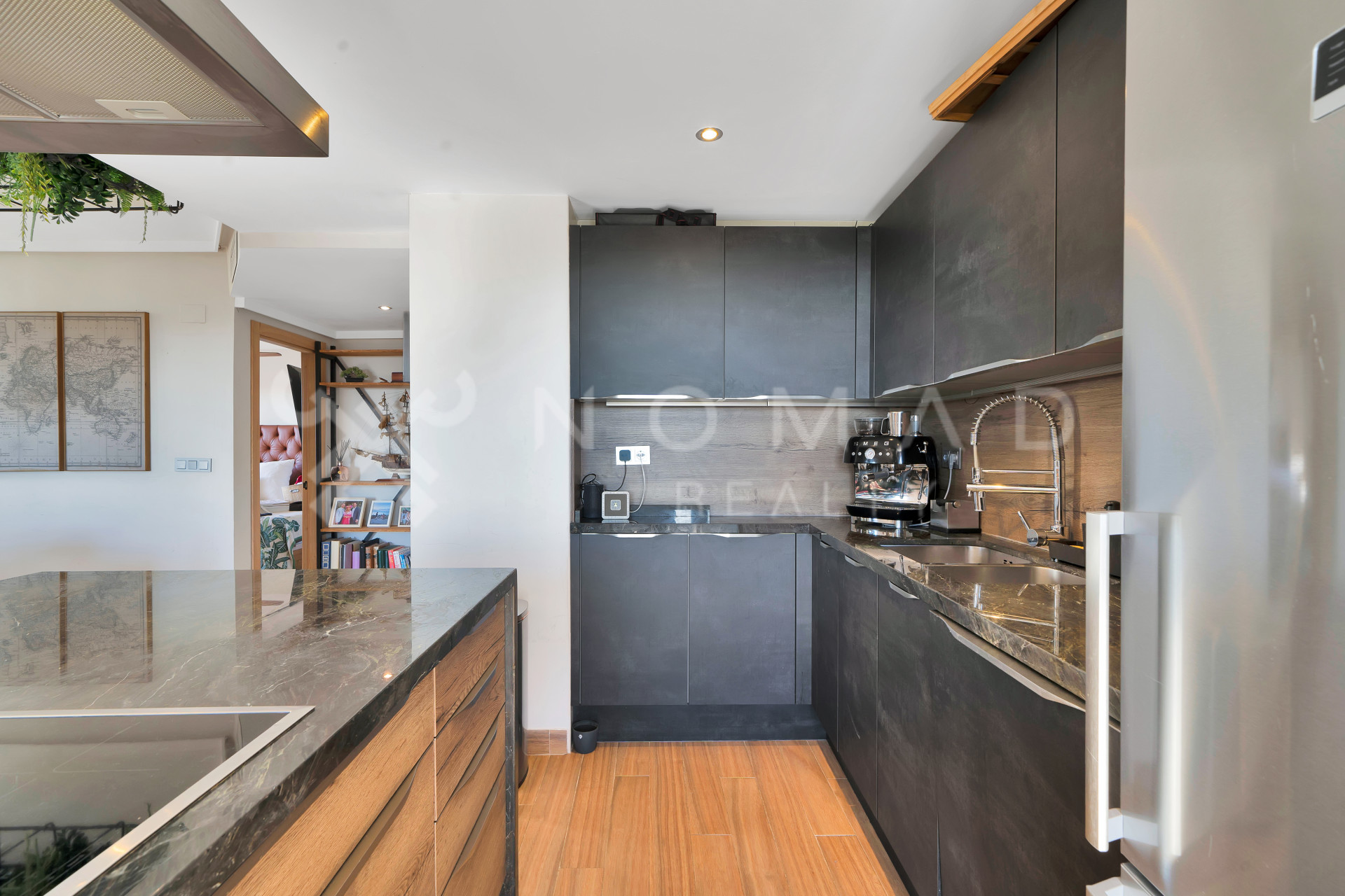 La cocina, de espectacular diseño, ha sido completamente renovada y abierta al salón comedor, creando un espacio único.