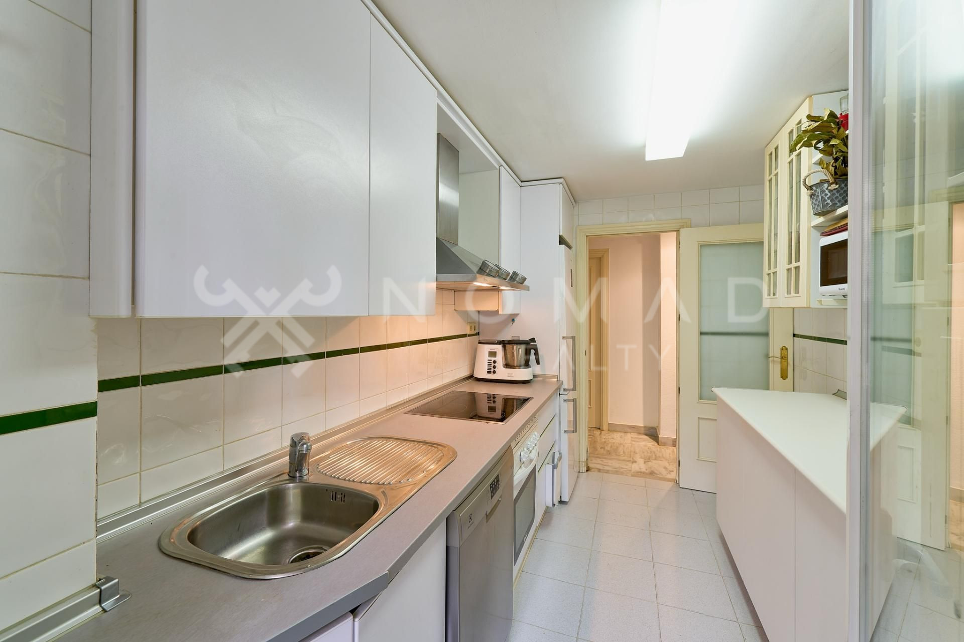 La propiedad cuenta con tres espaciosas habitaciones equipadas con armarios empotrados y con excelente iluminación. Los acabados en toda la propiedad son de primera calidad. Los dos baños que posee el bajo son completos, con ducha, bañera, excelente iluminación y ventilación. El salón es amplio, cómodo y se beneficia durante casi todo el día de iluminación natural. La cocina es independiente, moderna y totalmente amoblada.