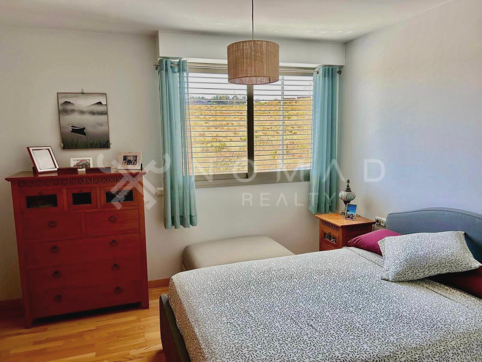 La propiedad cuenta con tres habitaciones muy bien iluminadas,ventiladas y equipadas con armarios empotrados. Asimismo, por toda la vivienda se extienden suelos en mármol, una chimenea de leña aporta calidez en las noches más frías y la calefacción por suelo radiante en los dos baños añade un toque de confort. La moderna cocina con lavadero independiente está diseñada para facilitar las tareas cotidianas, mientras que el aire acondicionado, el doble acristalamiento, las persianas de seguridad y el videoportero proporcionan comodidad y tranquilidad.
