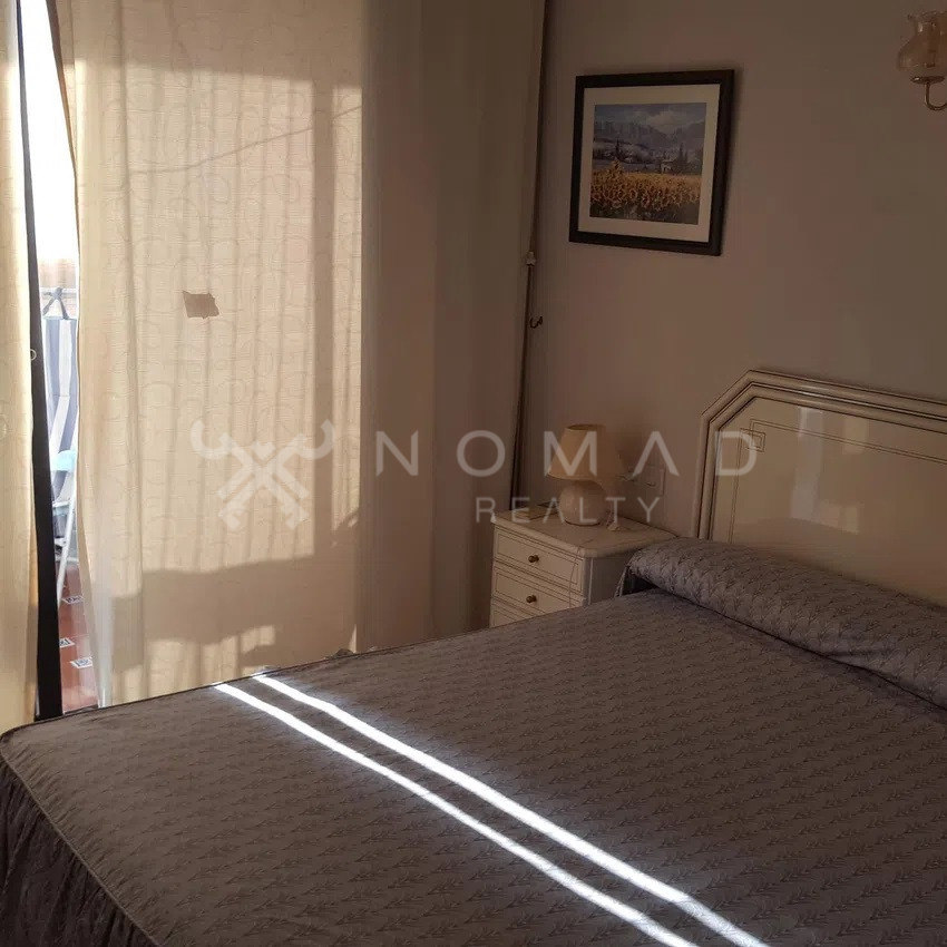El piso cuenta con dos cómodas habitaciones equipadas con armarios empotrados y dos baños. Al ingresar encontrarás un salón muy bien iluminado con acceso a la terraza cubierta y acristalada con orientación sureste que brinda maravillosas vistas al Mediterráneo. La cocina, por su parte, se encuentra en un espacio semiabierto, totalmente amoblada. Todos los espacios son diáfanos, cómodos y muy bien ventilados.